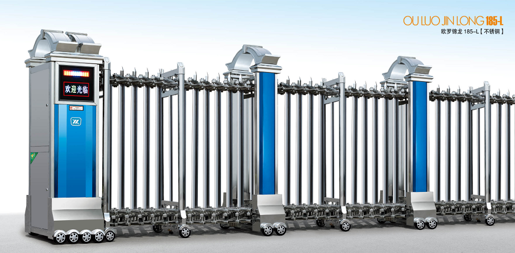 所以使用這種電動伸縮門必須注意保養(yǎng)和維護滑輪與導軌上部間隙容易使門體滑落,使用的安全性得不到保證。所以選擇這種電動伸縮門必須注意電動伸縮門的抗風壓強度。這種不穩(wěn)定的運行使驅動器負載不斷變化,對電氣組件的使用壽命影響極大。側懸掛結構,對門體向上的支撐力都在一條線上,門體重心由于安裝精度的誤差和風力的影響.使門體不僅形成靜態(tài)側擺也產生動態(tài)側擺。為此.這種電動伸縮門門體下部的導向塊,通常稱為"止擺塊",就使用一種軸承,軸承直徑小于門體下部導槽,使門體在兩方向擺動的條件下依然可以運行。這種側擺產生的震動在使用效果上表現為噪音,其后果必然導致滑輪和導軌的磨損。